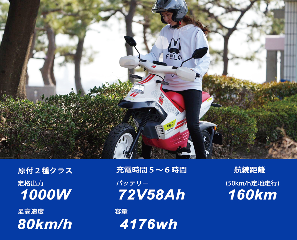 *航続距離:160kmは、FELO Technologyラボが行ったNEDC作業条件における50km/hのテストデータです。